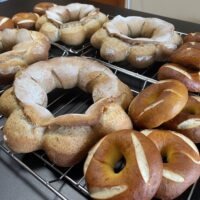 パン作り初心者でも驚くほどかっこいいパンが焼ける4月のメニューの追加レッスンの5/3ご案内。クーロンヌボルドレーズとプレッツエルベーグルを自家製酵母で学びます。